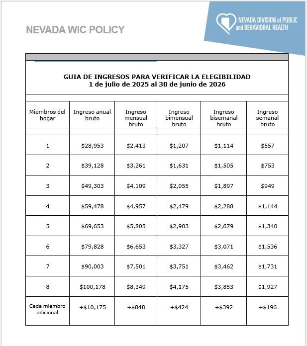 Para calificar para beneficios de WIC, el ingreso total combinado de su hogar, antes de impuestos, no puede exceder la siguiente guía de ingreso.